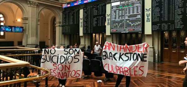 Un centenar de personas se han concentrado este jueves a las puertas de la Bolsa de Madrid para denunciar la "violencia inmobiliaria" de fondos buitre como Blackstone. La protesta estaba convocada por colectivos de vivienda (la Coordinadora de Vivienda de… Seguir leyendo →